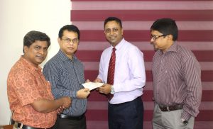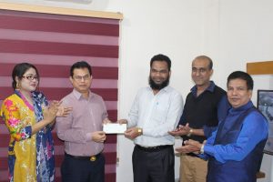 It’s nice to share that Mr. Rokibul Hasan Talukder, Assistant Director of Ambala Foundation is giving up a cheque of 5000 (Five Thousand taka) to Shwapnojatra